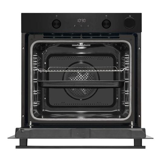 Son design noir élégant s’intègre facilement dans les cuisines contemporaines. Les commandes sont pensées pour une utilisation intuitive, offrant un accès rapide aux fonctions et aux programmes de cuisson.